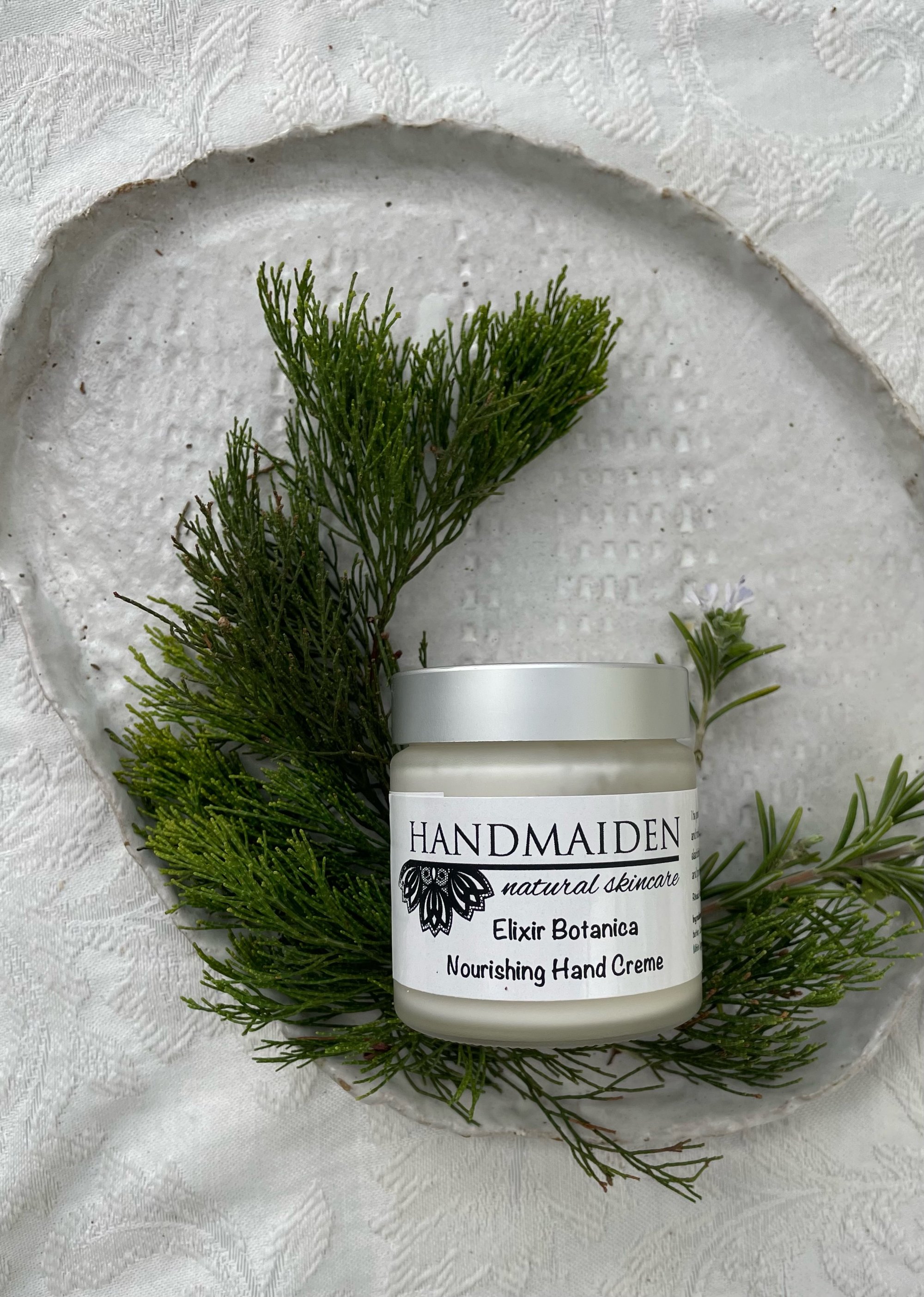 Elixir Botanica Nourishing Hand Creme is perfect for indulging your hard working hands with a touch of luxury. Rich and decadent Avocado and Hemp seed botanic oils, organic Shea butter, Cacao butter and Vitamin E combine to make a lightweight yet nourishing and protective Creme that locks in moisture. The Elixir Botanic essential oil blend is grounding, refreshing and healing, for hands that are soft and smooth and an uplifted mood.