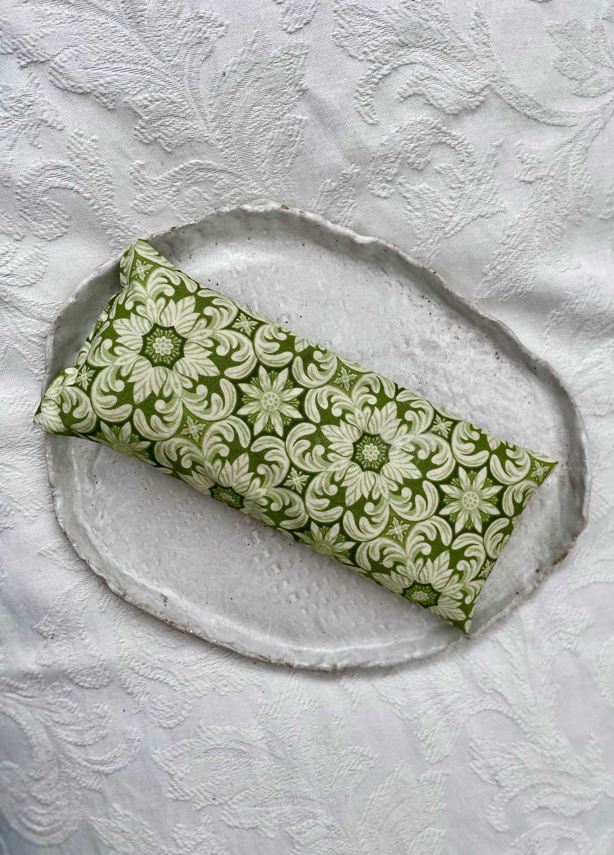 Filled with Linseeds and Organic Lavender Heads, place the eye pillow over eyes to block out all light, let it mould to your face to apply gentle pressure to stimulate acupressure points. This pillow can be cooled in freezer, but please do not heat. Gently squeeze to release more essential oil prior to using.