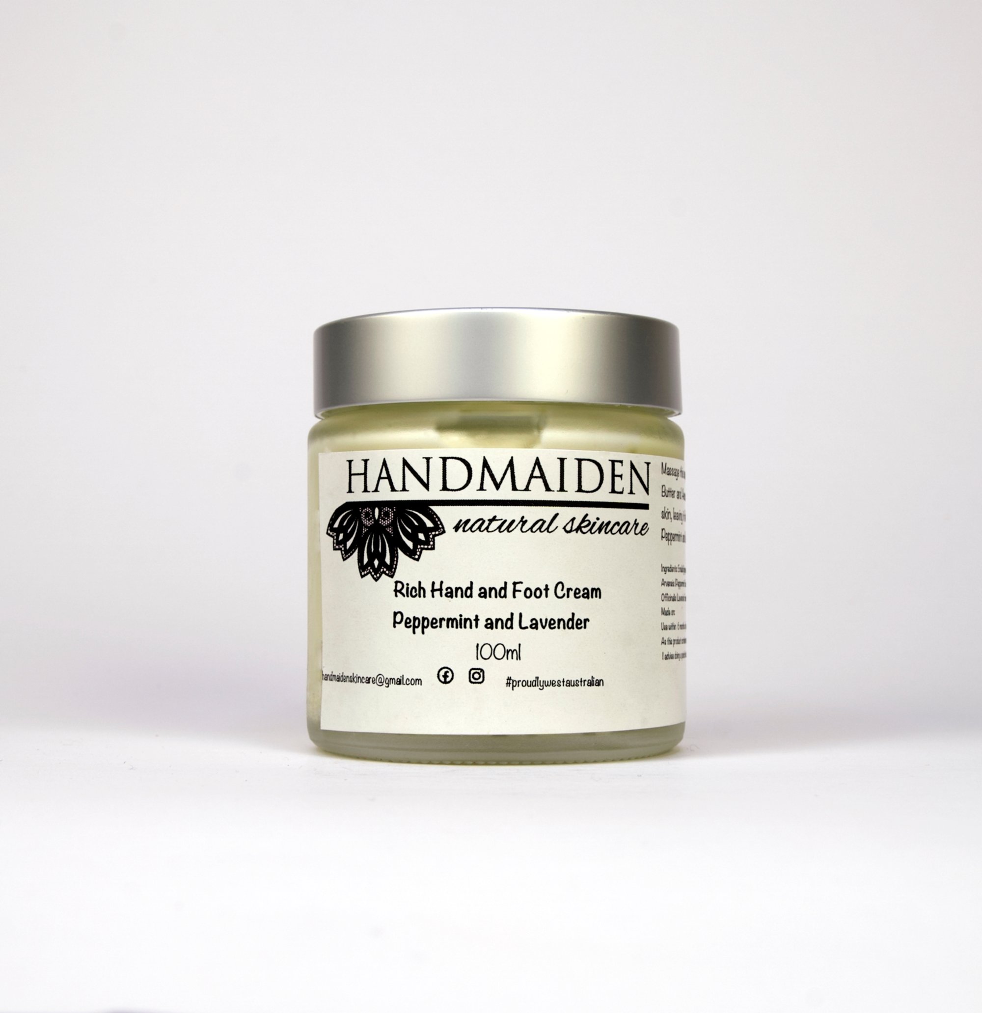 Method: Massage into clean hands and feet as needed, especially after being submerged in water. Use on any other areas of skin that may need extra care, like knees and elbows. For badly cracked heels, remove skin build up with a brush or scrub. Massage a generous amount of Rich hand and Foot cream into affected area, cover with cotton socks. Repeat as necessary.